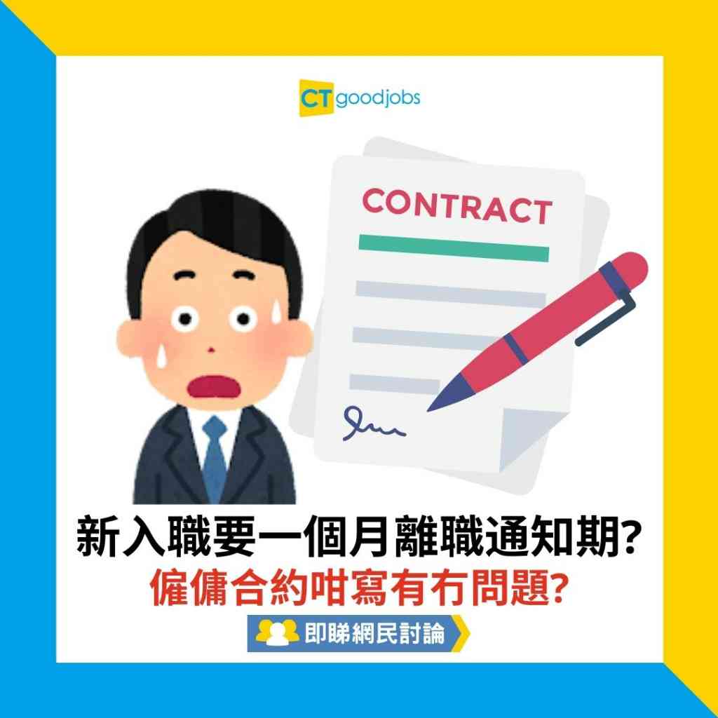 【勞工法例|試用期離職通知期一個月?】進入新公司前,普遍打工仔會與僱主簽訂僱傭合約以保障雙方權益,但合約條款普遍由僱主制訂,僱員如果稍有不慎就會墮入求職陷阱。最近,香港討論區有一名打工仔哭訴,指早前簽約入職時發現所有員工於辭職前皆要給予一個月通知期,新員工如是,大叫中伏。坊間常有「入職後一個月內可以即走」一說,究竟這間公司的做法有沒有問題呢?CTgoodjobs今次為大家整理了勞工法例下的常見僱傭條款,包括試用期內通知期、終止合約的注意事項、僱主僱員是否需要給予通知或代通知金,以及辭職時的常見問題。