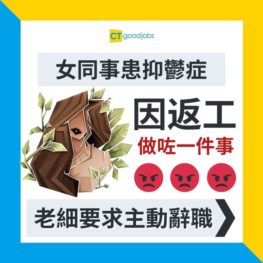 【平等機會】女同事患抑鬱症成日喊 被老闆要求主動辭職?