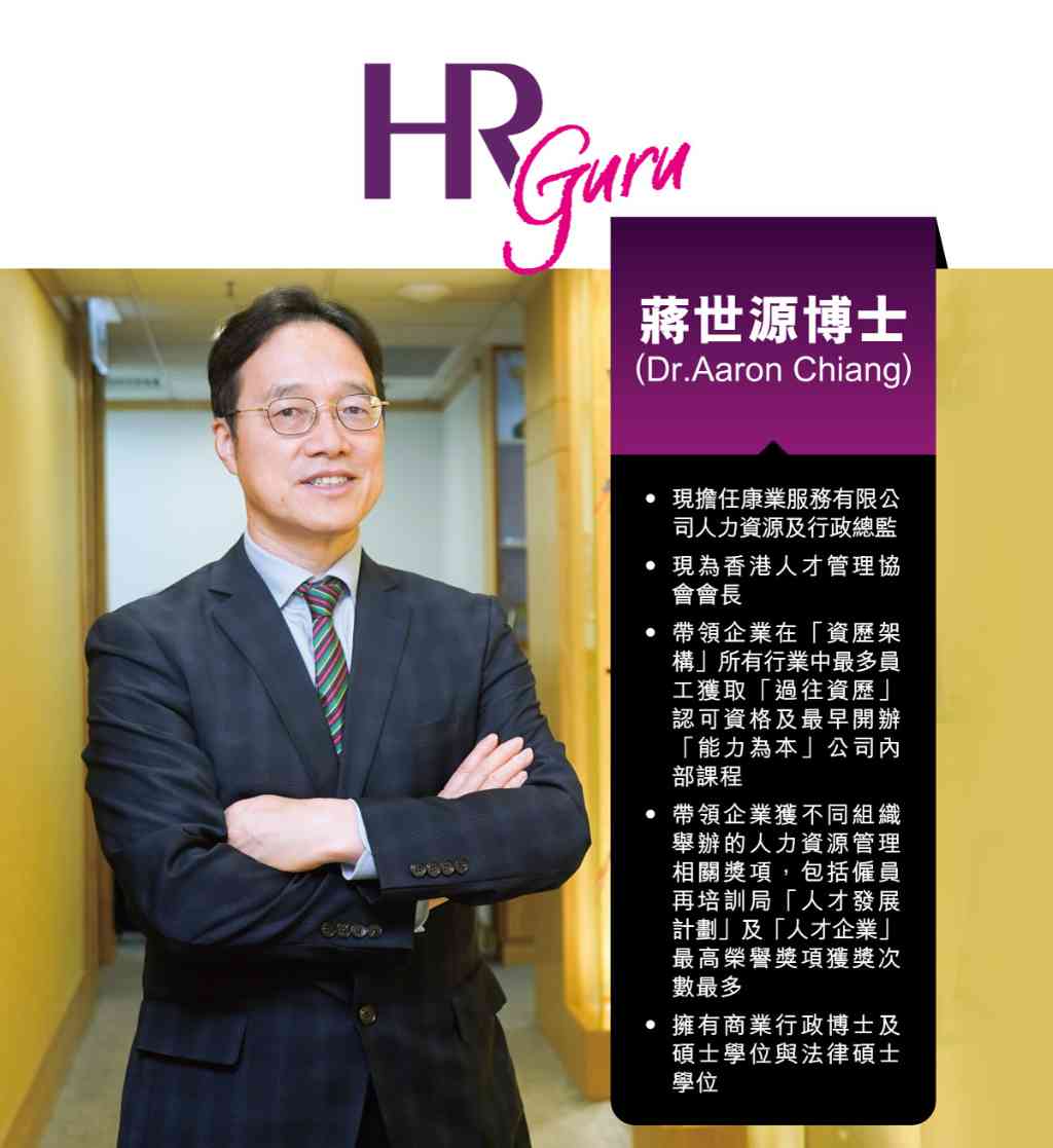 人力資源工作日新月異,因人而異,變化萬千。如何應對市場變化以迎合企業業務及同事個人發展需要,成為HR從業員的重要工作。投身人力資源超越30年的康業服務有限公司人力資源及行政總監兼香港人才管理協會會長蔣世源博士(Aaron),分享其人力資源工作經驗,並對行業未來發展提出意見。