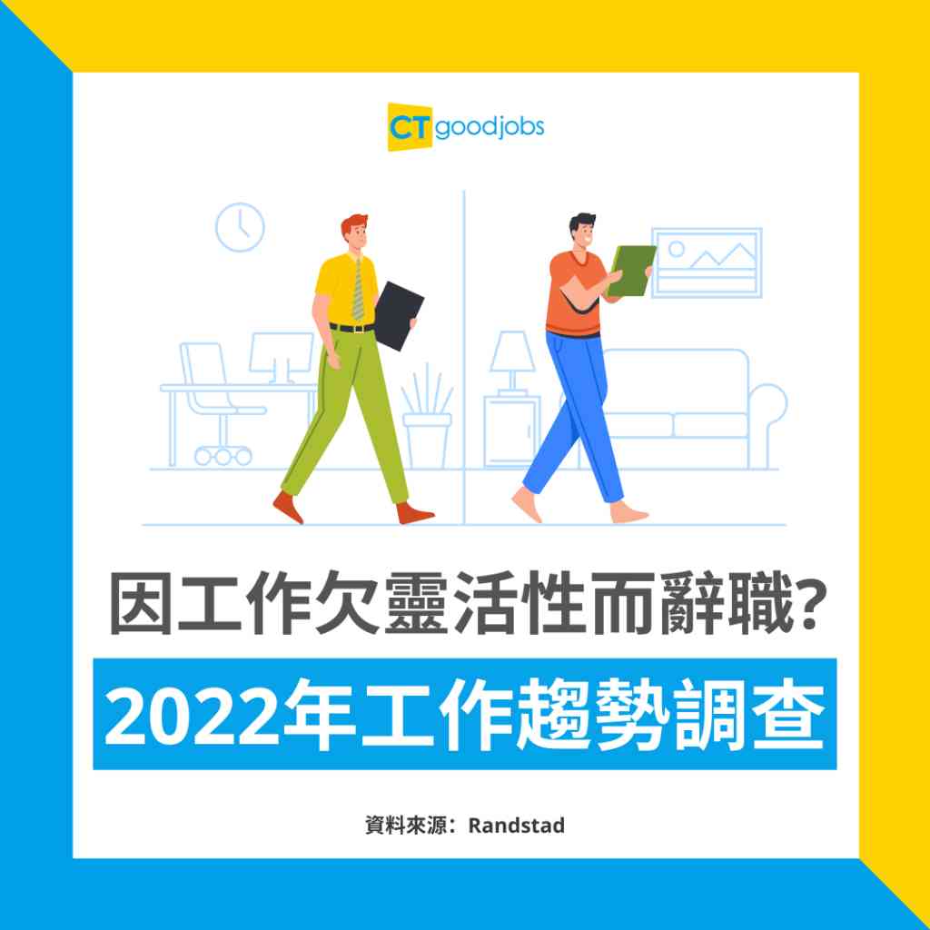 人力資源解決方案公司Randstad於2022年2月21日至3月13日期間,訪問了1,000名在香港就業、年齡介乎18至67歲的上班族。調查還發現,超過一半的受訪者(55%)同意彈性上班地點很重要,比全球平均水平(71%)低16%;有32%受訪者表示,不會接受不能提供彈性上班地點的工作Offer。
