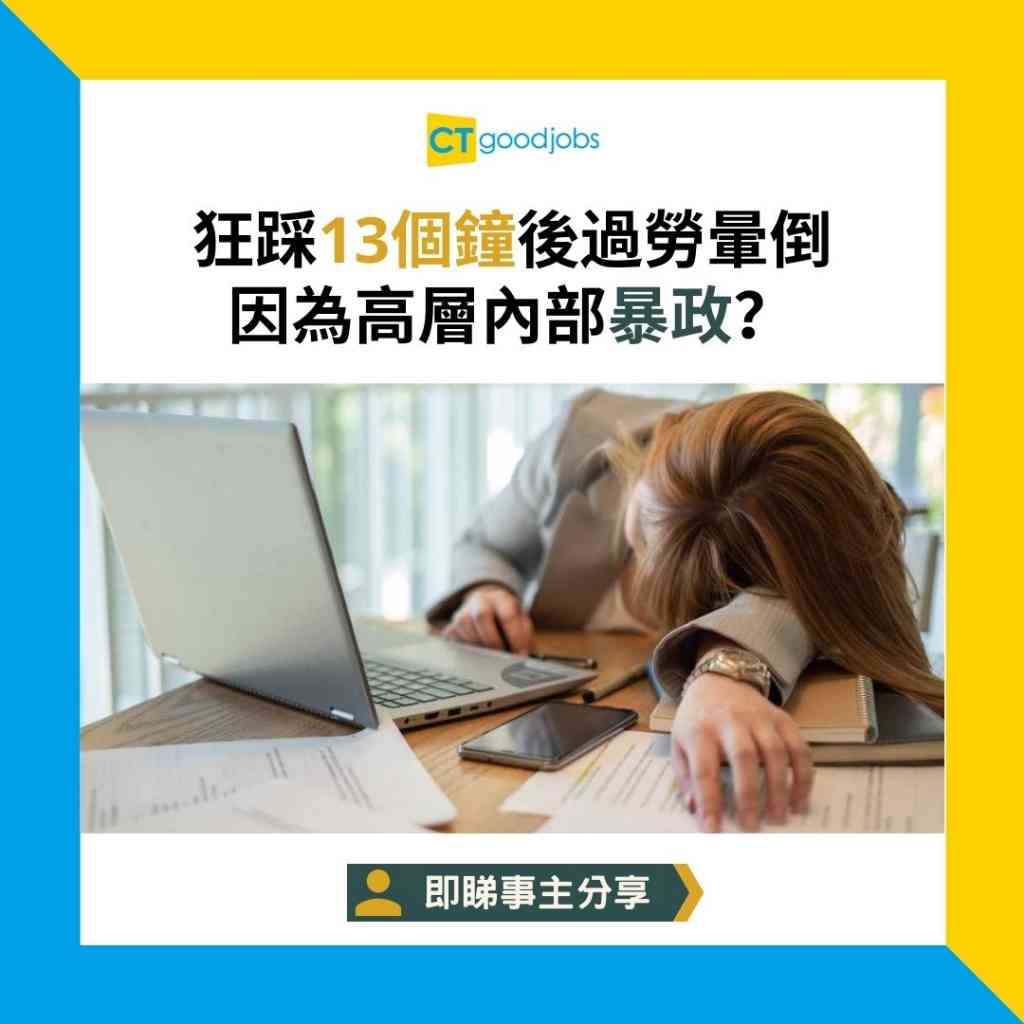 事主:終於有人過勞暈咗,人事部聲都無出,坐喺總部嘅淨係會睇數字,分分鐘連有件咁嘅事都唔知。