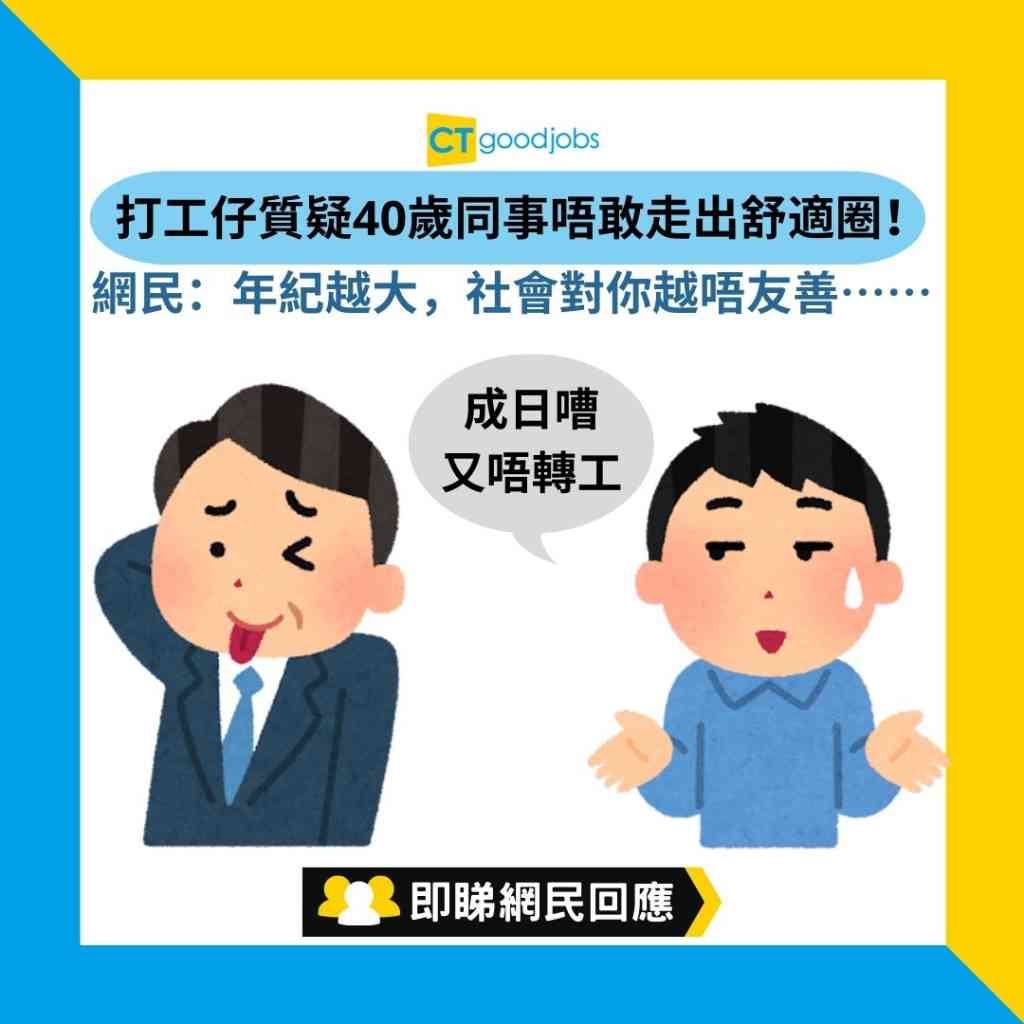 【職涯規劃】年過40歲就唔轉工?打工仔質疑同事唔敢走出舒適圈!網民:年紀越大,社會對你越唔友善⋯⋯