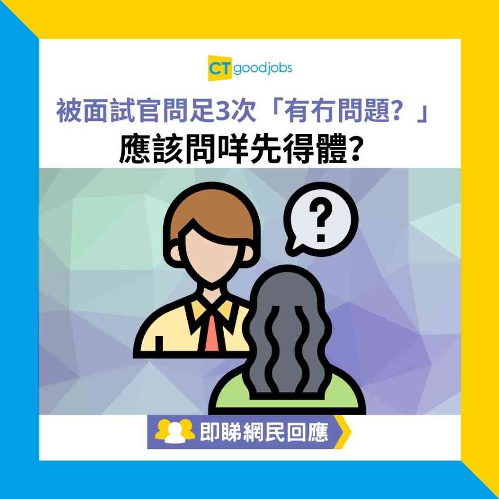 網民:「HR希望你問問題,佢想幫你,所以你第一、二次唔問,佢再問你第三次叫你問嘢的原因,不外乎想睇吓你有幾想入間公司,e.g.你會唔會想知多啲公司的文化、工作、方向,或者你本人會唔會有好奇心……」