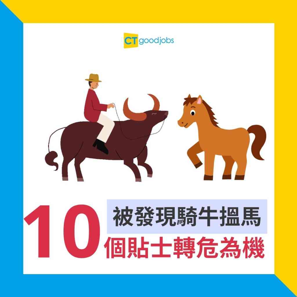打工仔「騎牛搵馬」,無非都是想爭取更好的待遇,乃職場上的正常事。雖則如此,打工仔有意覓尋新工作,仍然是一個不能說的秘密,否則讓上司及同事知道不只尷尬,更可能會質疑你的工作態度。若不幸地被其他人發現自己「騎牛搵馬」該怎辦?