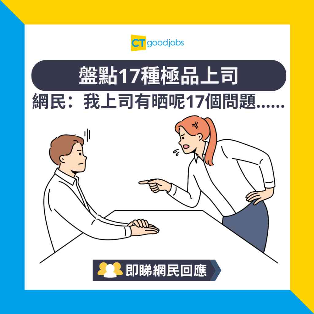 網民A:我發現,你講嘅17個問題全部集中喺我某一個主管身上,佢真係個「奇葩」,好彩我做咗3個月就走咗。