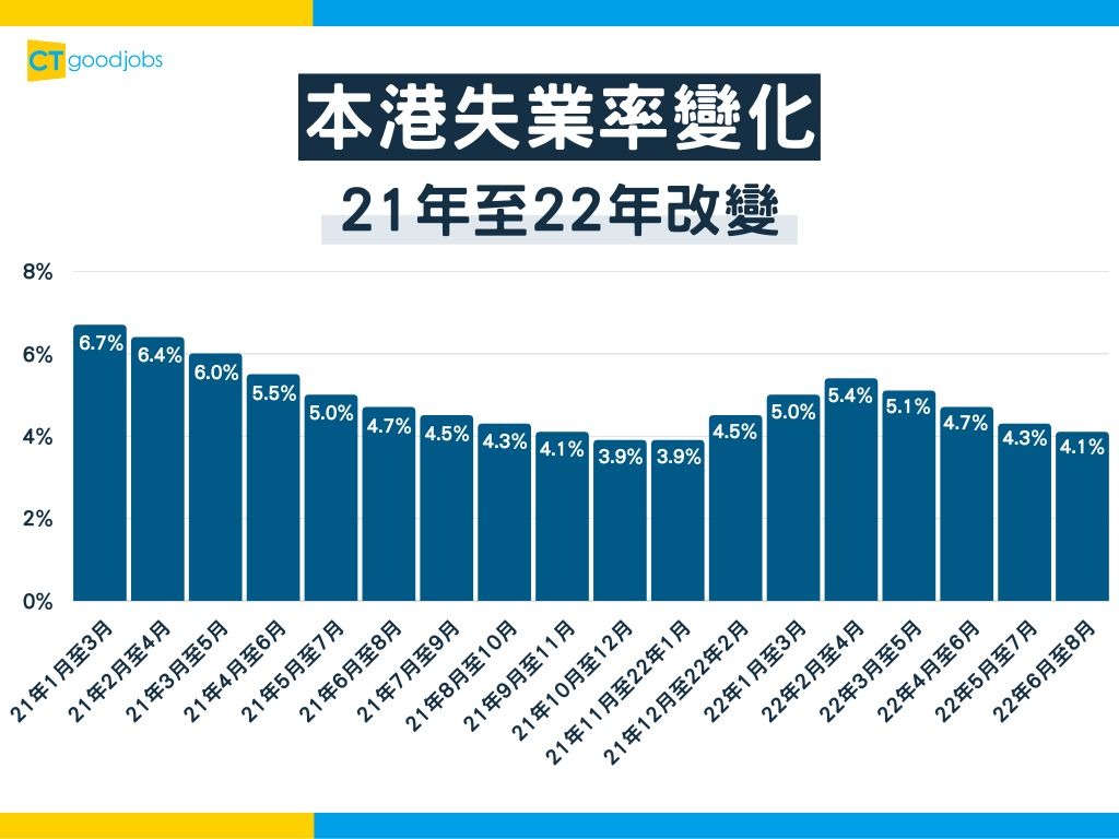 本港失業率進一步回落至4.1%,較上次公布微跌0.2個百分點,連續4個月下跌。其中樓房裝飾、修葺及保養業,和藝術、娛樂及康樂活動業的失業率,皆有相對明顯跌幅。