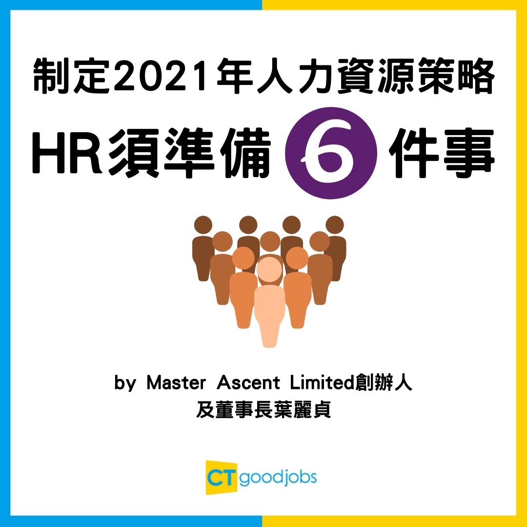 Polly亦分享,在制定2021年人力資源策略前,HR需做好6個準備工作,她亦在書內分6個章節講解︰(按圖了解)