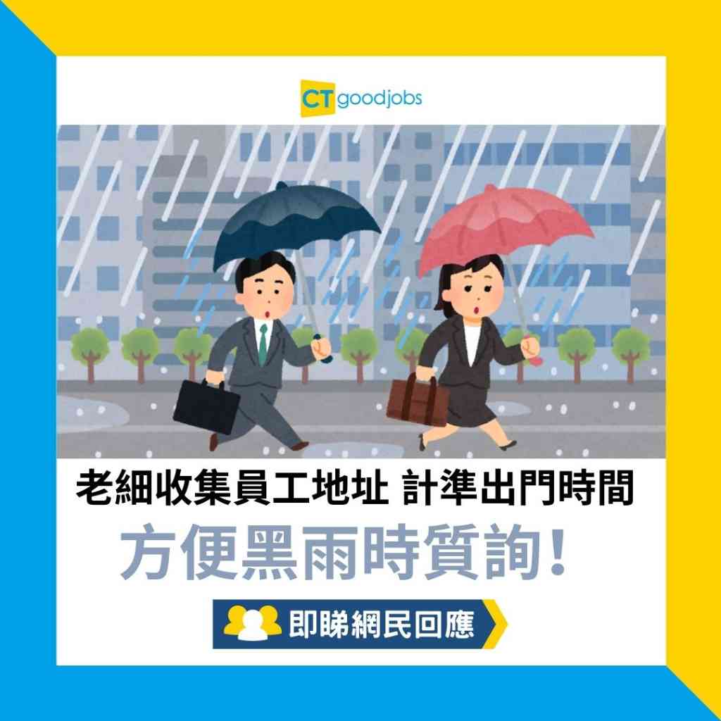 【惡劣天氣】老細收集員工地址 計準出門時間 問:點解掛黑雨個時間你唔係搭緊車?