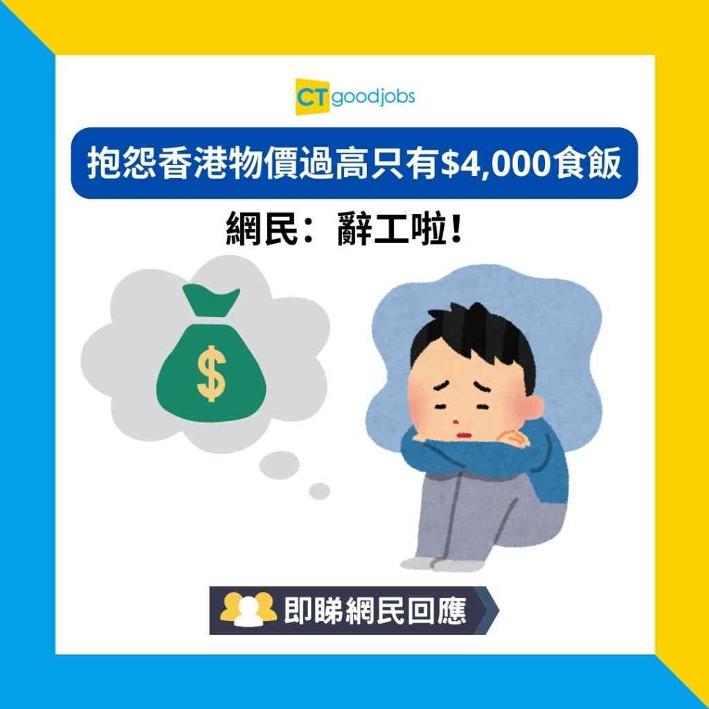 【打工仔薪酬】月薪僅得$15,000 抱怨香港物價過高只有$4,000食飯 網民:辭工啦!
