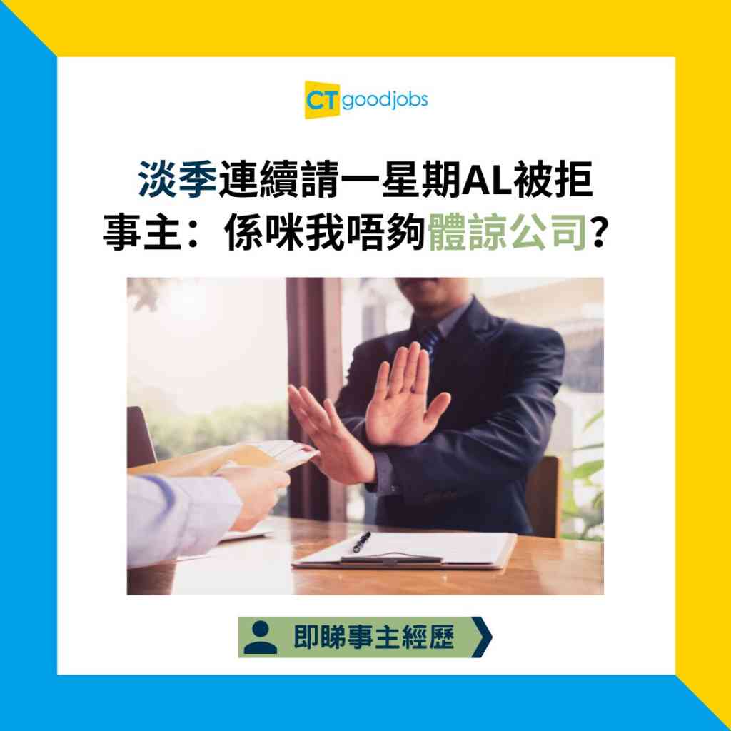 延伸閱讀:【請假風波】淡季連續請一星期AL被拒 事主:係咪我唔夠體諒公司?