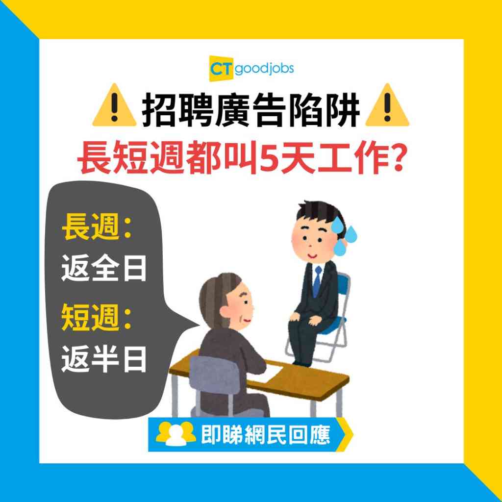 網民:「試過見工時話長短週,點知水咗入去做所謂嘅長短週,一日要返足全日,另一日都要返到下晝,伏呀!」
