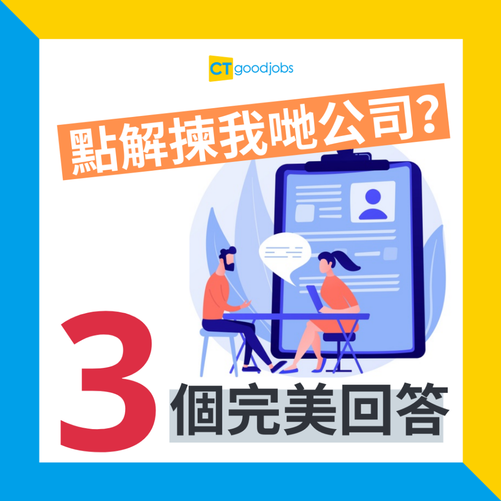 「你為什麼選擇我們公司?」、「點解揀我哋公司?」是面試中最常出現的問題,事實上,人力資源部(HR)不是想聽到應徵者虛偽地吹噓公司優點,而是透過你的答案,觀察你對工作崗位及企業文化有多了解及匹配。CTgoodjobs建議求職者可從以下3個方向著手,把自身職涯規劃及公司發展「Connect」起來,令對方留下深刻印象。