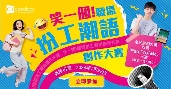 ♦CTgoodjobs舉辦首個「笑一個!職場扮工潮語創作大賽」!