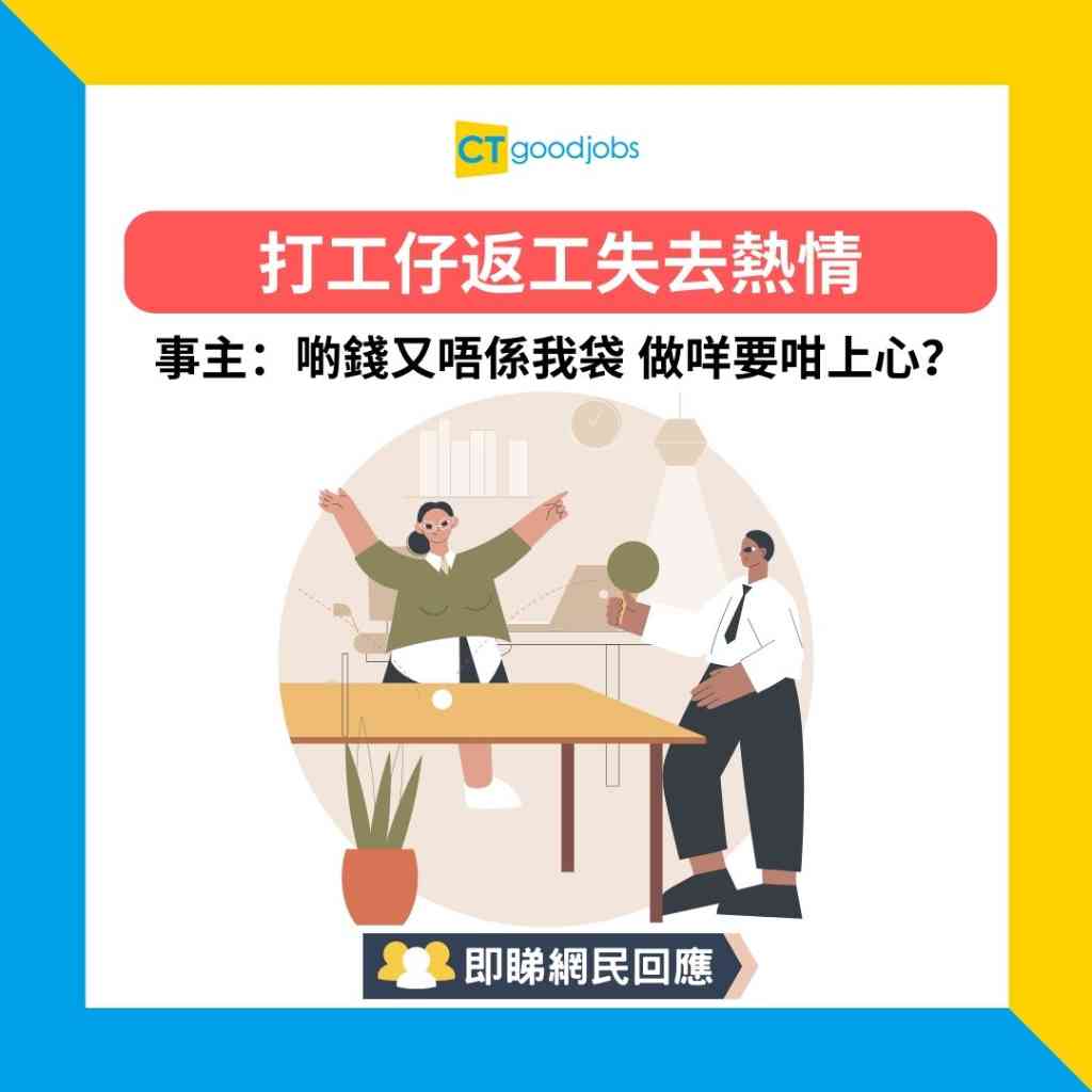 延伸閱讀:【打工失熱情】打工仔頭1年對工作充滿熱誠 第2年就開始躺平!事主:因為做熟咗啲嘢就無熱情