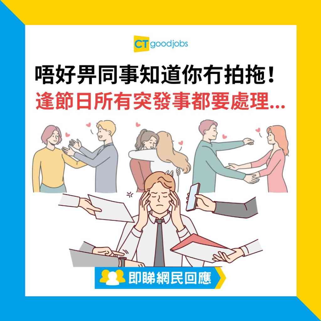 過時過節公司多生事端?即刻按圖了解更多職場節日大矛盾。延伸閱讀︰【除夕】唔好畀同事知道你冇拍拖!單身打工仔:逢節日所有突發事都要我處理…