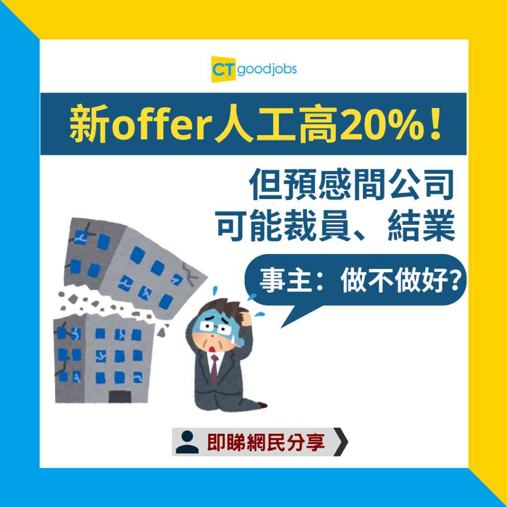 【職場熱話】新offer人工高20%!但預感間公司可能裁員、結業 事主:做不做好?