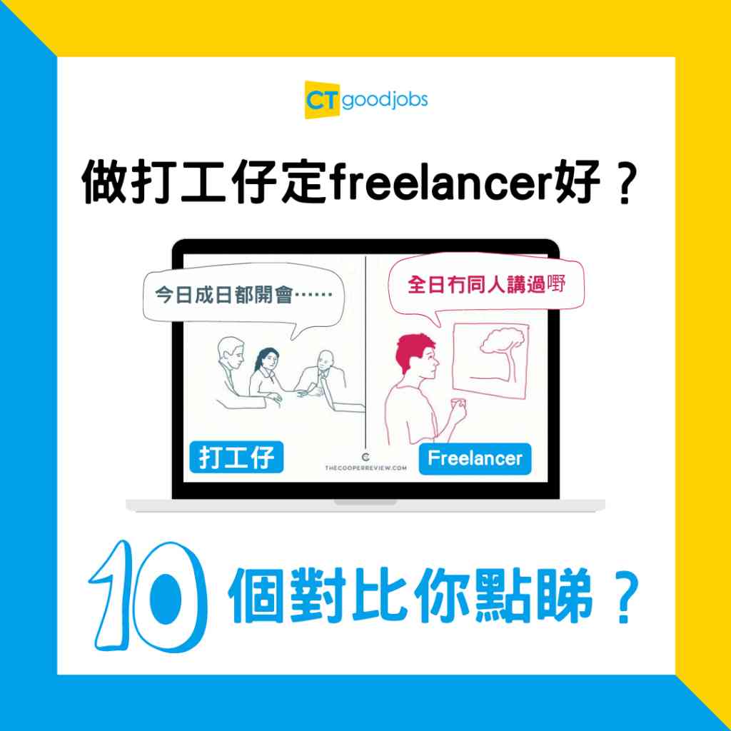 有人喜歡穩定的全職工作,有人喜歡當freelancer及Slash,然而打工有打工的辛酸,Freelancer也不如字面上的自由,各有利弊,至於哪一方比較好?其實視乎每個人的性格而定。外國網站The Cooper Review有插畫家以此為題,從不同方面如工作心態、人工、對老闆的態度等,為打工仔與freelancer作出比較,不知道你又有沒有曾經有過這些想法呢?