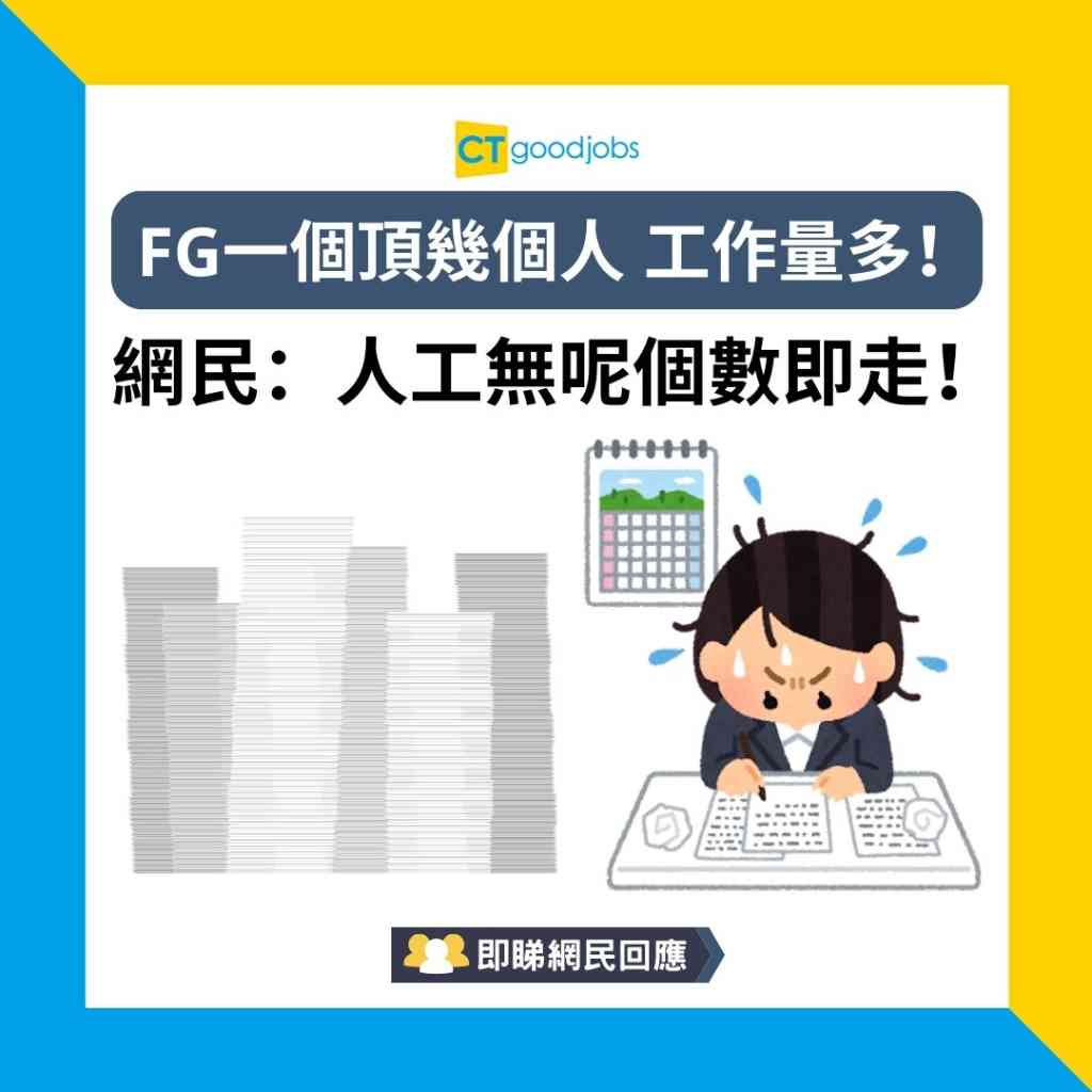 在網上討論區Dcard有FG分享個人經歷,指自己才入職2個月以上,就要做幾個人的工作量,負責大型項目,令他無所適從。對此網民指︰「沒有這個數目的人工,建議辭職離開!」