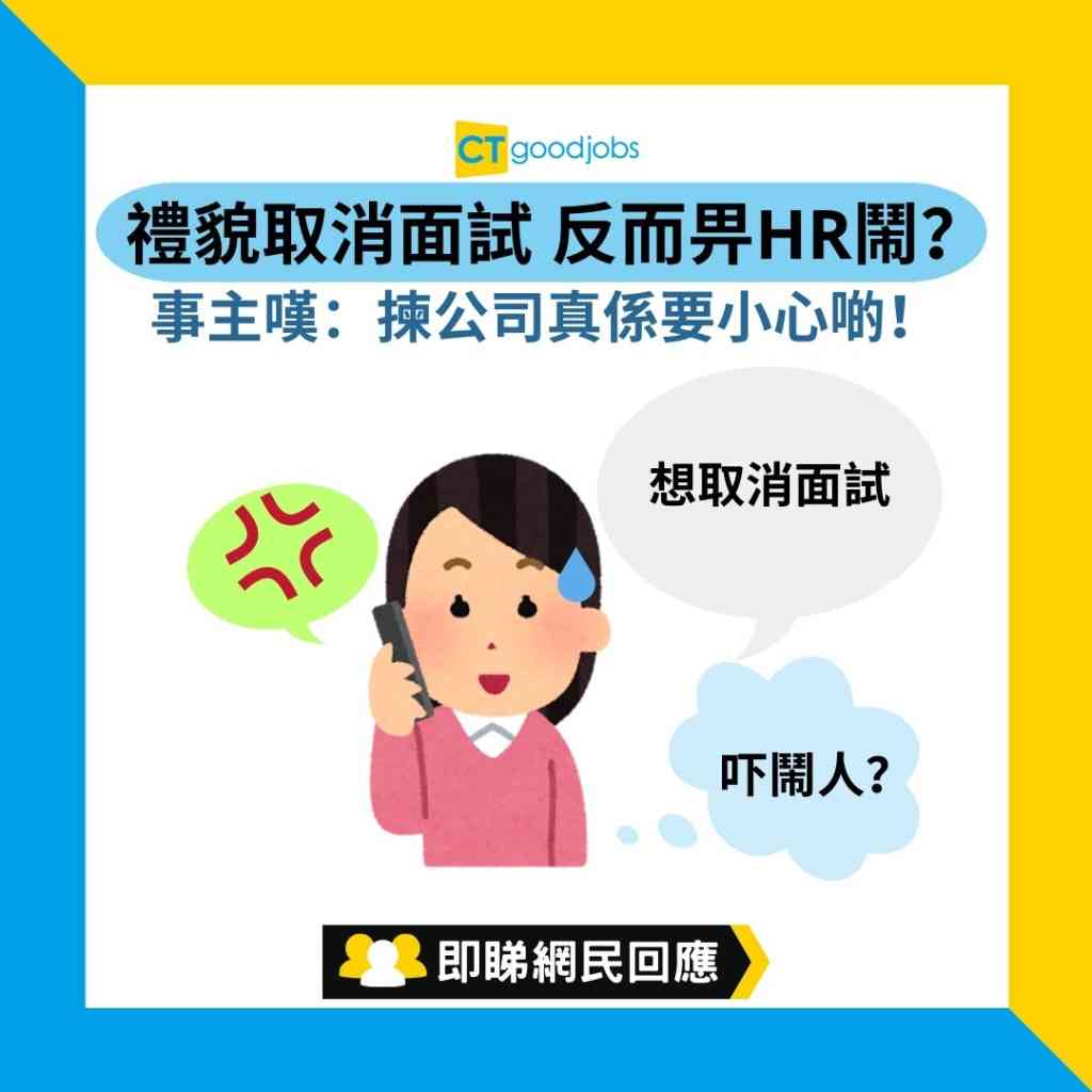 事主:「呢間公司真係唔知想點,已經提早同佢講搵到工,想取消面試,但佢竟然鬧我!真係多謝佢哋令我開眼界。