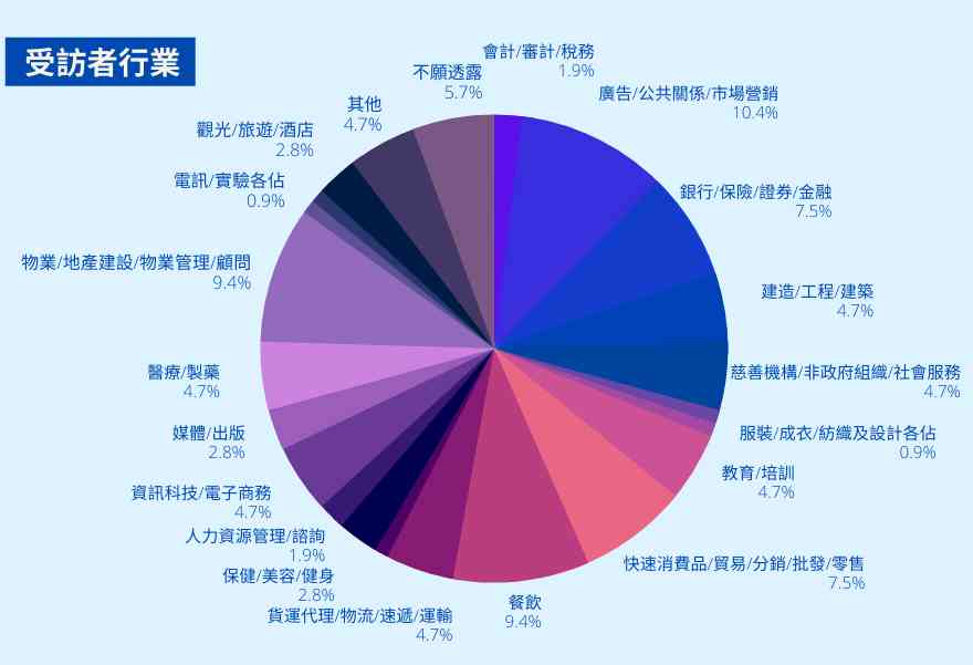 近年不少企業都面對人才流失的問題,為了留住現有員工及吸引更多適合的人才加入,其中一個方法,就是制定具競爭力的薪酬福利。CTgoodjobs於2022年3月以網上問卷形式,進行《打工仔疫下最想獲得的員工福利》調查,分別收集了107份來自23個行業的打工仔問卷,受訪者中有56.1%為普通員工、19.6%為中級管理層、13.1%為專業職系等。