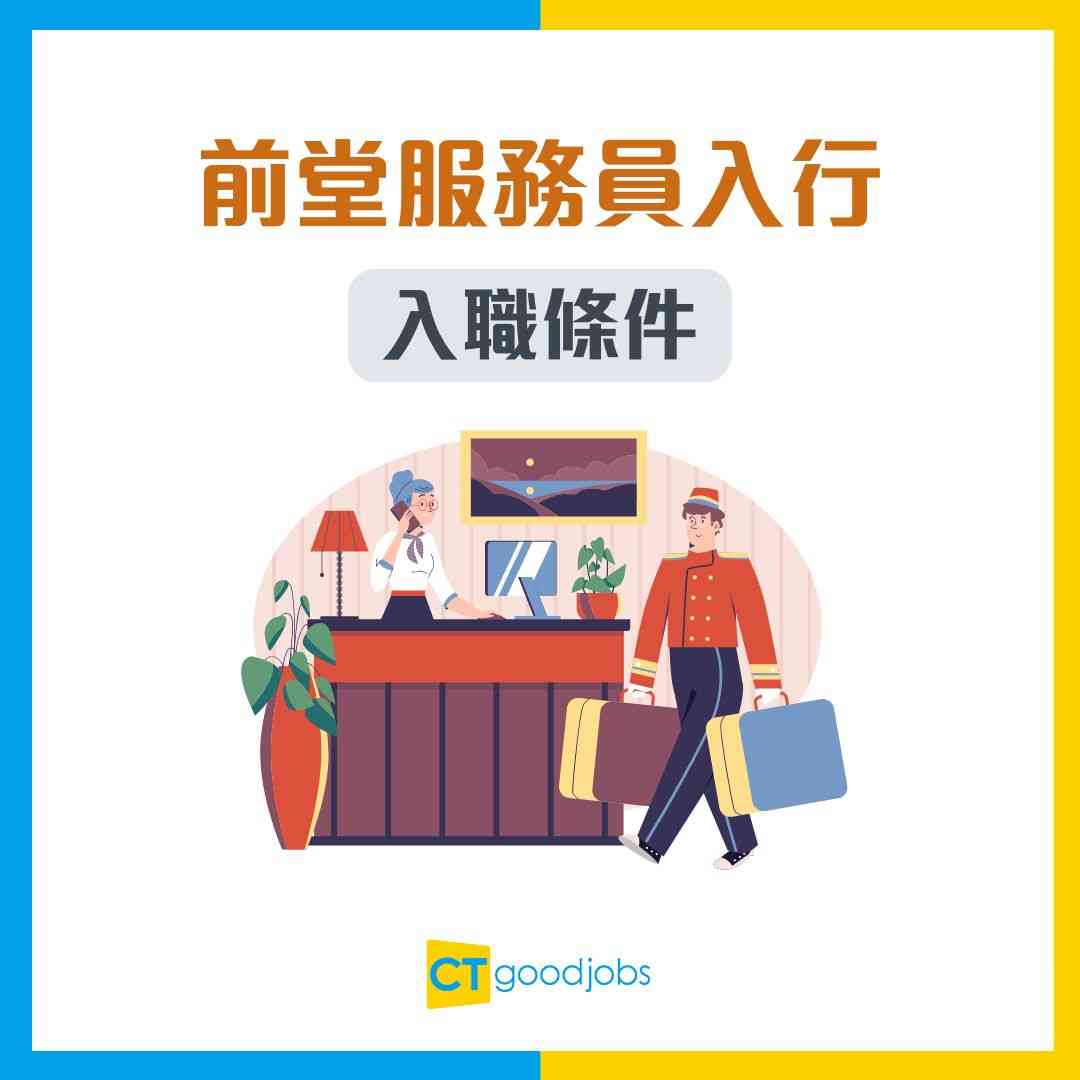 前堂服務員入職最低要求為中學五年級至七年級或DSE學歷、年滿18歲;無相關經驗可由前台接待或實習開始。