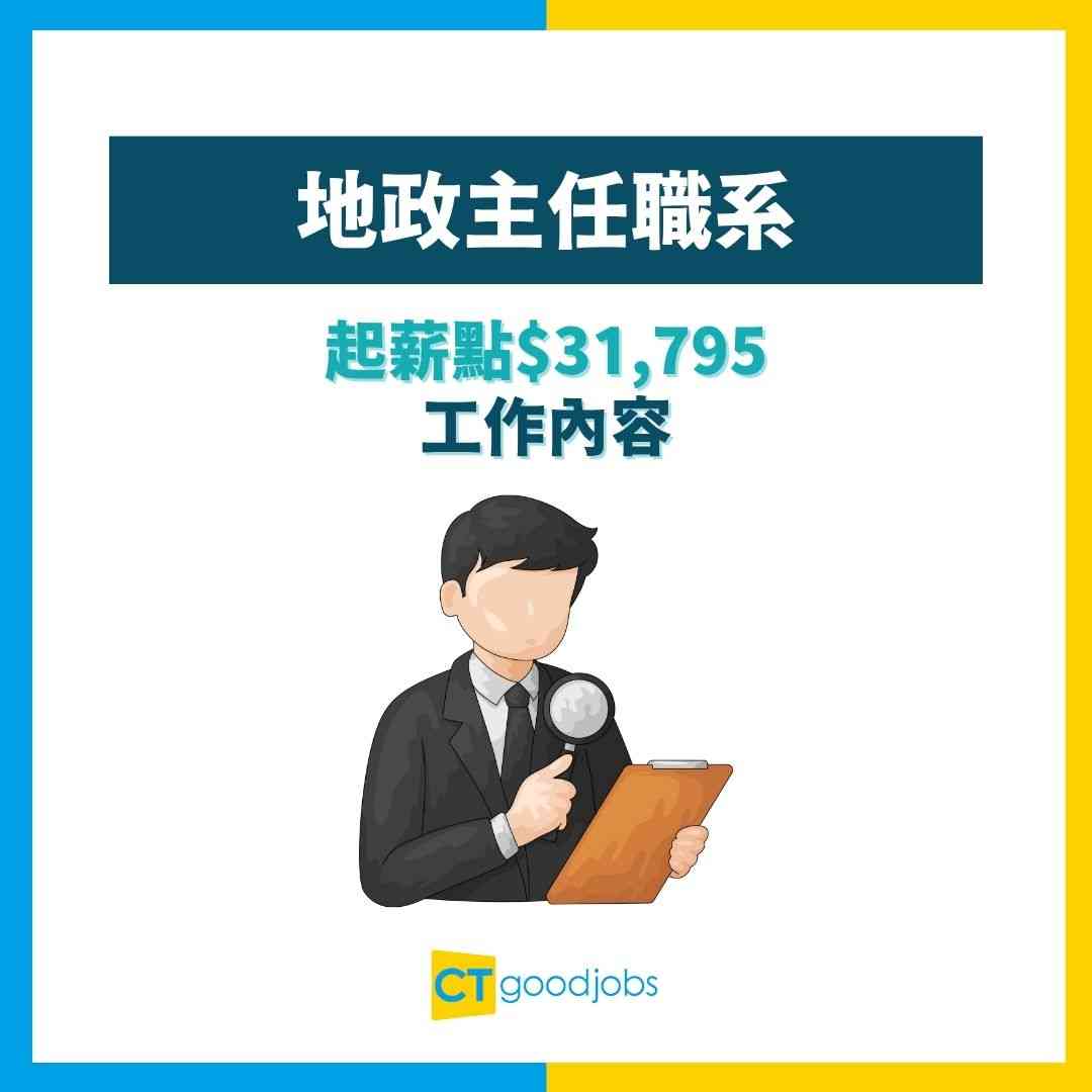 地政主任職系為香港政府的公務員職系,主要隸屬於地政總署,負責執法、巡查私人土地、土地徵用、土地管制、執行契約條款、寮屋管制、小販管理及新界地區發展等工作,是政府中層執行部門的重要一員,為香港的土地管理及城市發展作出貢獻。地政主任起薪點為$31,795,具有明確晉升階梯,最高可晉升至高級首席地政主任,頂薪可達$179,425,職系提供完整的公務員福利及穩定的職業發展前景。CTgoodjobs全面介紹地政主任職系的架構、薪酬晉升、學歷要求、工作內容、招聘流程,助你全方位了解這份公務員職系。