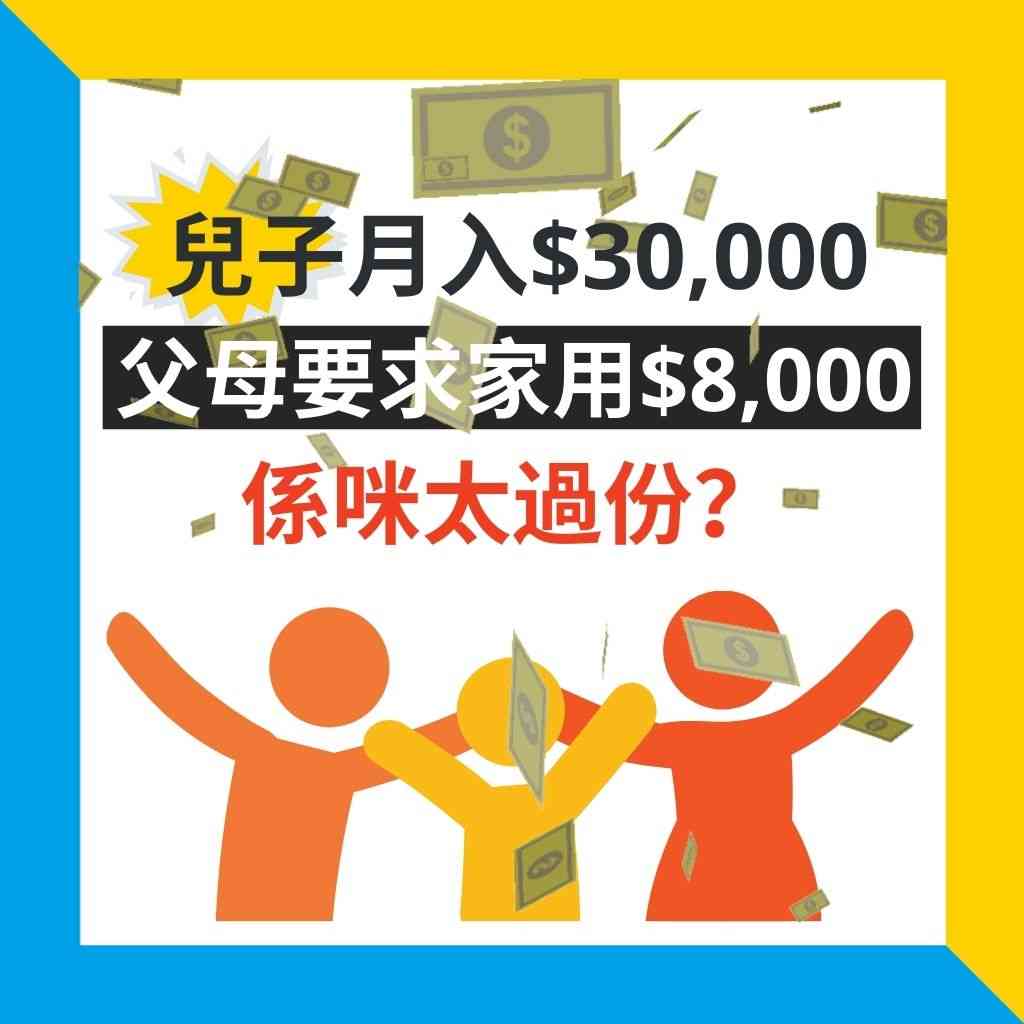 【家庭關係】兒子月入$30,000 父母要求畀$8,000做家用是否過份?