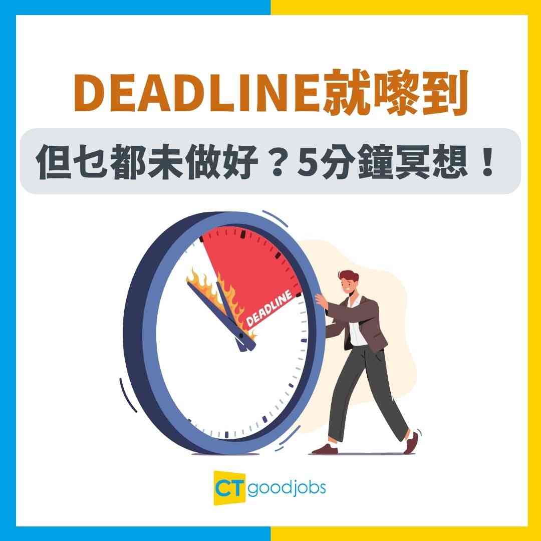 Deadline,本是實事求是地管理時間與進度的工具,但當人手過多任務或自我要求過高時,Deadline反而成為壓力來源。大腦受到壓力刺激時,分泌腎上腺素,令心跳加速、呼吸急促、肌肉繃緊,甚至出現自我懷疑和恐懼。短期壓力有助激發動力,但長期焦慮則會使情緒失控,令思考能力下降。因此,面對急迫時刻,我們急需一套有效的減壓方法,幫助自己重拾冷靜。