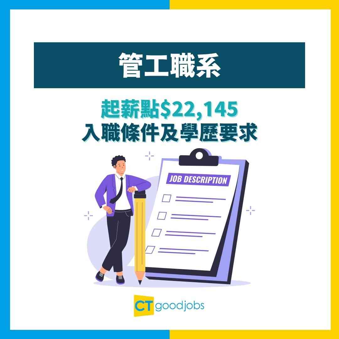 H2:職系架構 管工職系為香港政府基層執行職系,隸屬食物環境衞生署及衞生署等部門,主要負責公眾衞生監管、環境衞生管理、食物安全檢查、食物場所檢測及防治傳染病等執法及規管工作。職系員工需要在社區前線工作,直接與市民及商戶接觸。 - 管工職系隸屬於食物環境衞生署及衞生署,職系員工在社區前線工作,直接與市民及商戶互動。 - 職系主要職責涵蓋公眾衞生監管、環境衞生管理、食物安全檢查及執法規管工作。 - 管工職系設有完整的晉升階梯,包括管工、高級管工、巡察員及高級巡察員四個職級。 - 職系員工在擁有良好表現及充足年資後,可逐步晉升至更高職級,享受薪酬及職責上的提升。 - 由管工晉升至高級管工需積累相關年資,晉升至巡察員及高級巡察員則需進一步年資及部門考核。 - 職系具有穩定的晉升前景,職位競爭指數為中,職位穩定指數為高。 ## H2:薪酬及晉升階梯 | 職級 | 薪級表點數 | 月薪範圍 (HK$) | |------|----------|--------------| | 高級巡察員 | 總薪級表第21至25點 | $47,010–$56,450 | | 巡察員 | 總薪級表第16至20點 | $36,850–$44,765 | | 高級管工 | 總薪級表第12至15點 | $29,995–$35,080 | | 管工 | 總薪級表第7至11點 | $22,145–$28,225 | - 管工為入職職級,起薪點$22,145,月薪範圍$22,145–$28,225,薪級表第7至11點。 - 高級管工職級月薪範圍$29,995–$35,080,薪級表第12至15點,為中層職級。 - 巡察員職級月薪範圍$36,850–$44,765,薪級表第16至20點,具有更高的監督責任。 - 高級巡察員為最高職級,月薪範圍$47,010–$56,450,薪級表第21至25點。 - 薪酬會隨年資自動按薪級點遞增,晉升需視乎部門空缺及個人表現而定。 ## H2:入職條件及學歷要求 ### H3:基本要求 - 申請人必須為香港永久性居民,符合基本身份要求。 - 申請人須通過《基本法及香港國安法》測試,取得及格成績。 - 受聘者須接受職系/部門首長作出的調派及調職安排,服從職系調派。 ### H3:學歷要求 - 須在香港中學文憑考試五科考獲第2級或同等或以上成績(包括中國語文科及英國語文科),或具同等學歷。 - 或在香港中學會考五科考獲第2級/E級或以上成績(包括中國語文科及英國語文科),或具同等學歷。 - 取得有關學歷後,須具備兩年工作經驗方可申請管工職位,確保工作經驗。 - 須在香港中學文憑考試或香港中學會考中國語文科及英國語文科考獲第2級或以上成績。 - 必須能操流利粵語和簡單英語,符合語文溝通能力要求。 ### H3:其他要求 - 須通過《基本法及香港國安法》測試,答對10題或以上為及格(20題選擇題)。 - 符合身心健康要求,可能需通過體檢確保適合執行公務。 - 需穿著制服執行公務,符合公務員對個人儀容及專業表現的要求。 ## H2:管工工作內容 ### H3:食物環境衞生署管工主要職責 - 督導初級人員執行潔淨、街市管理、防治蟲鼠及值勤室等工作,確保工作質素。 - 根據合約的條款和條件,監察承辦商的表現,調查工作表現欠佳或未履行合約責任的情況。 - 根據條例進行與職級相關的執法工作,包括食物安全巡查、衞生檢查、蟲鼠防控巡查等。 - 保存執法及行政記錄,撰寫工作報告,完成與食物環境衞生監管相關的文書工作。 ### H3:衞生署管工主要職責 - 履行與衞生署負責執行各項條例的執法職務和規管工作,包括吸煙、進出口、酒類應課稅品。 - 執行傳染病防控、危險藥物及藥物管制等相關執法工作,保護公眾健康。 - 協助舉辦健康教育及推廣活動,包括在各出入境管制站為旅客而設的健康推廣活動。 - 根據條例範圍進行循規審查,協助處理公眾查詢,就相關投訴進行調查。 - 督導和監察初級人員履行執法職務和規管工作的表現,確保執法工作質素。 - 協助執行辦公室行政工作,包括備存執法及存貨記錄、編製統計資料並撰寫報告。 ### H3:工作環境 - 工作地點:各食物環境衞生署辦公室、街市、食物場所、邊境管制站、社區等多個地點。 - 工作時間:可能須輪班當值及不定時工作,包括星期日及公眾假期值班。 - 戶外工作:需在偏遠地點(包括邊境管制站)執行戶外職務,進行現場檢查及巡查。 - 職務特色:需穿著制服執勤,在颱風襲港及其他緊急事故時執行職務。 - 可能須駕駛小型電單車、電單車或汽車執勤,執行現場巡查及執法工作。 - 專業要求:需具備良好的溝通技巧、責任感、執法意識及對公眾衞生工作有熱誠。 ## H2:管工招聘流程 ### H3:申請方式 - 網上申請:透過公務員事務局互聯網站作網上申請,方便快捷的申請途徑。 - 郵寄申請:填妥申請表格連同以下文件副本郵寄至相關政府部門指定地址。 - 應提交文件包括:學歷證書及/或修業成績單、《基本法及香港國安法》測試成績、綜合招聘考試成績單。 - 傳真或電郵遞交的申請將不獲受理,必須使用指定的申請方式。 ### H3:遴選程序 - 資格篩選:審核申請人學歷、語文能力及基本資格符合情況,初步評估申請人資格。 - 筆試(如適用):評估中英文運用能力,須於指定時間內完成筆試。 - 面試:評估專業知識、執法意識、溝通能力及服務熱誠,深入了解申請人特質。 - 《基本法及香港國安法》測試:20題選擇題,須於30分鐘內完成,答對10題或以上為及格。 - 品格審查:最終背景審查確保申請人適合公務員職位,維護公務員質素。 ### H3:正式聘用 - 面試邀請通常在截止申請日期後約數個月內發出,獲選者會收到面試通知書。 - 獲取錄的申請人按公務
