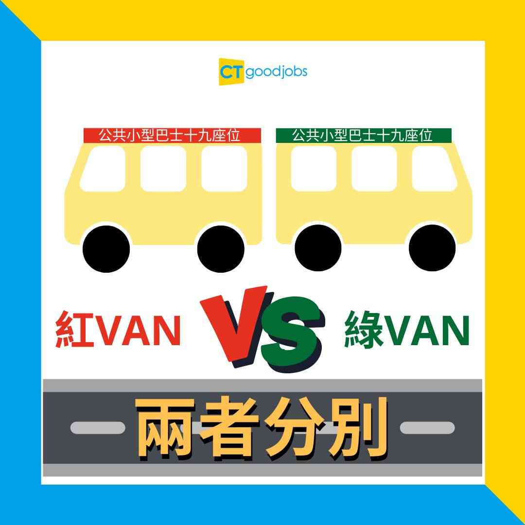 【紅Van與綠Van有咩分別?丨行內術語|小巴司機考牌】公共小型巴士(通稱「小巴」或「VAN仔」)是繼港鐵、專營巴士後本港第三大公共交通工具,不少人因便利快捷而選乘小巴。小巴分有非專線「紅Van」與專線「綠VAN」兩種,發展之初只有「紅VAN」,其後才有「綠VAN」。截至2025年3月,「紅VAN」只剩餘720輛,而「綠VAN」則有3,358輛,為何有這些差別呢?CTgoodjobs今次為大家整理「紅Van」與「綠VAN」的分別,更會講解一些行業小知識,包括小巴司機考試/考牌資訊、行內術語及一些常見問題。