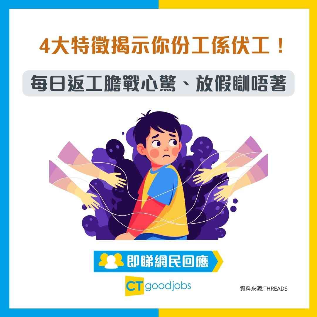 你有試過每日返工都膽戰心驚,生怕講錯一句說話得罪人?甚至開始懷疑自己的能力、自尊心一落千丈?近日有網民在社交平台 Threads 上分享「一份伏工的4大特徵」,迅速引起打工仔共鳴,不少人直言「中哂」、「份份工都係咁」。到底一份「伏工」有何特徵?打工仔又該如何自救?以下為你拆解網民熱烈討論的職場困境!