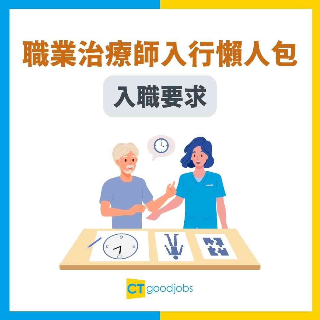 必須持有香港職業治療師管理委員會認可的學士或碩士學位,並在香港註冊為職業治療師及持有效執業證明書。部分職位需通過綜合招聘考試及《基本法及國安法》測試。