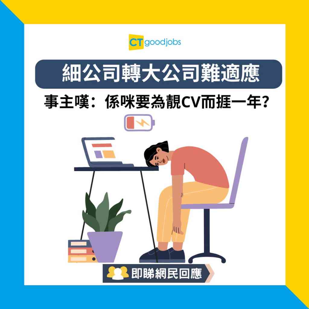 【跳出Comfort Zone】 細公司轉大公司難適應 無法融入公司文化 工作上手慢 事主嘆:係咪要為靚CV而捱一年