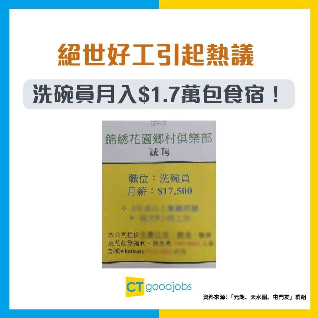 在香港這個寸金尺土的城市,打工仔每個月的薪水往往有一大半都要「進貢」給業主交租,想儲錢可謂難過登天。然而,近日有網民在Facebook群組分享了一則來自「錦繡花園鄉村俱樂部」的招聘告示,職位竟然是看似平凡的「洗碗員」。但最令人譁然的不是其職位,而是其「逆天」的員工福利。這份工作不單提供不錯的月薪,更標榜包食包住!這究竟是絕世筍工,還是另有內情?即睇內文為你拆解這份引起全城熱議的神工。