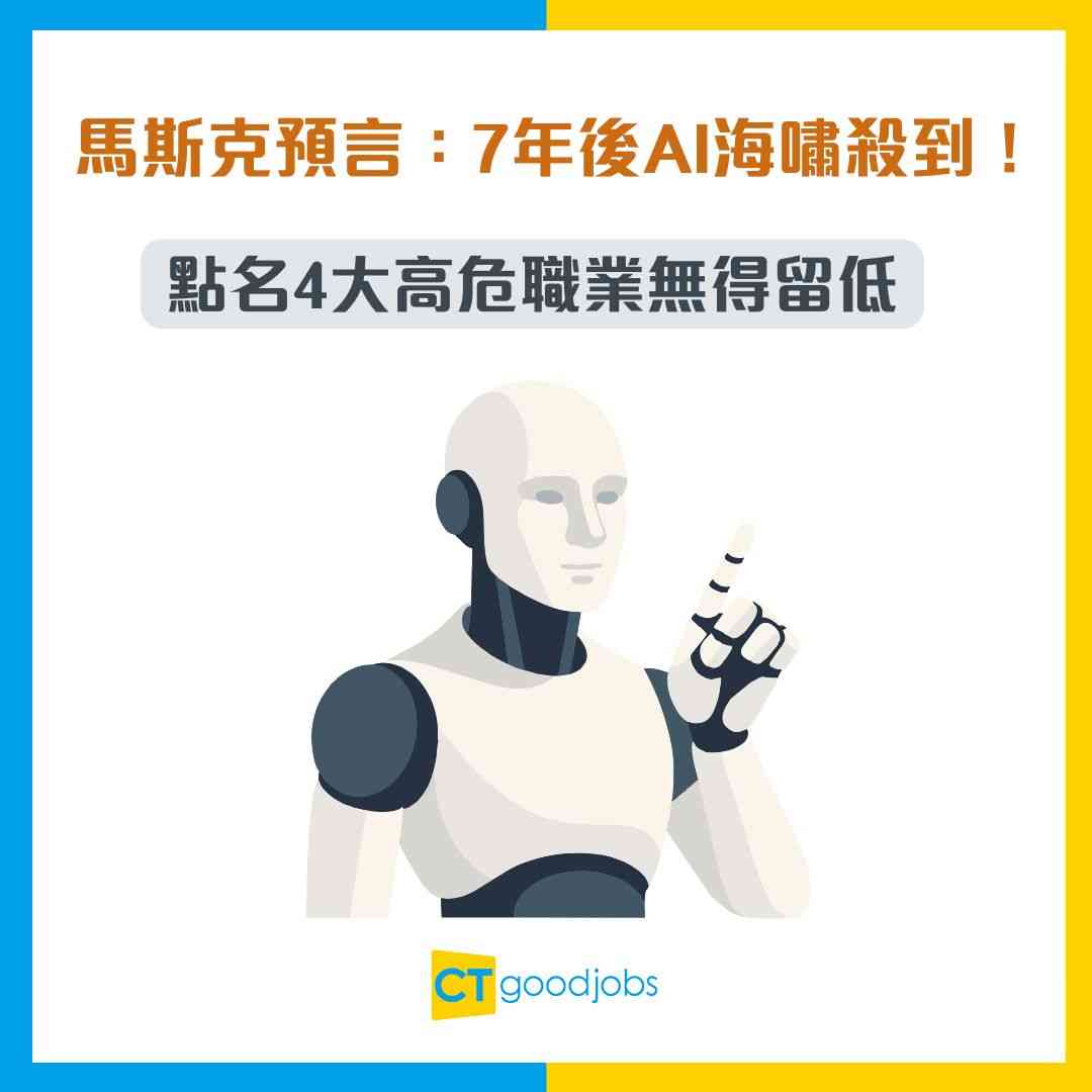 【飯碗告急】馬斯克驚預言:7年後AI海嘯殺到!50%白領恐被淘汰?點名4大高危職業無得留低