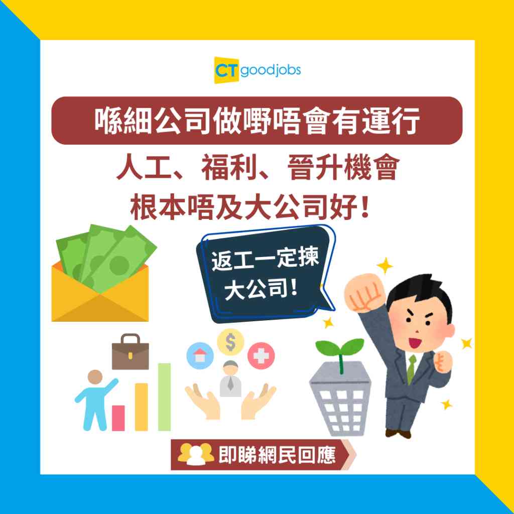 【任職細公司注定無前途?】喺細公司做嘢唔會有運行 人工、福利、晉升機會根本唔及大公司好!網民:細公司純粹拎嚟做跳台!