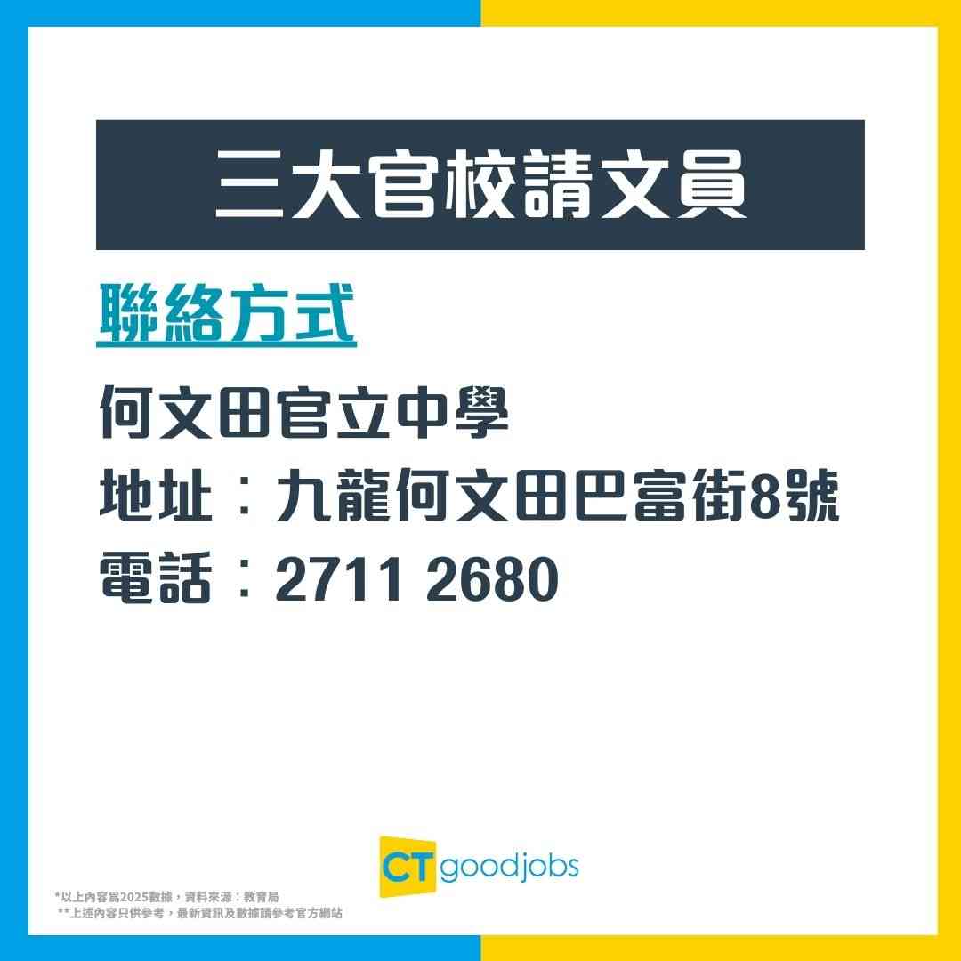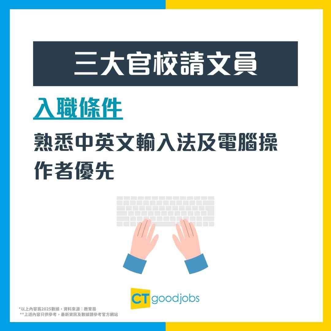 延伸閱讀:【教育局職位空缺2025】三間官校招聘文員 中五學歷 月薪$15,865(內附入職要求、職責及申請方法)