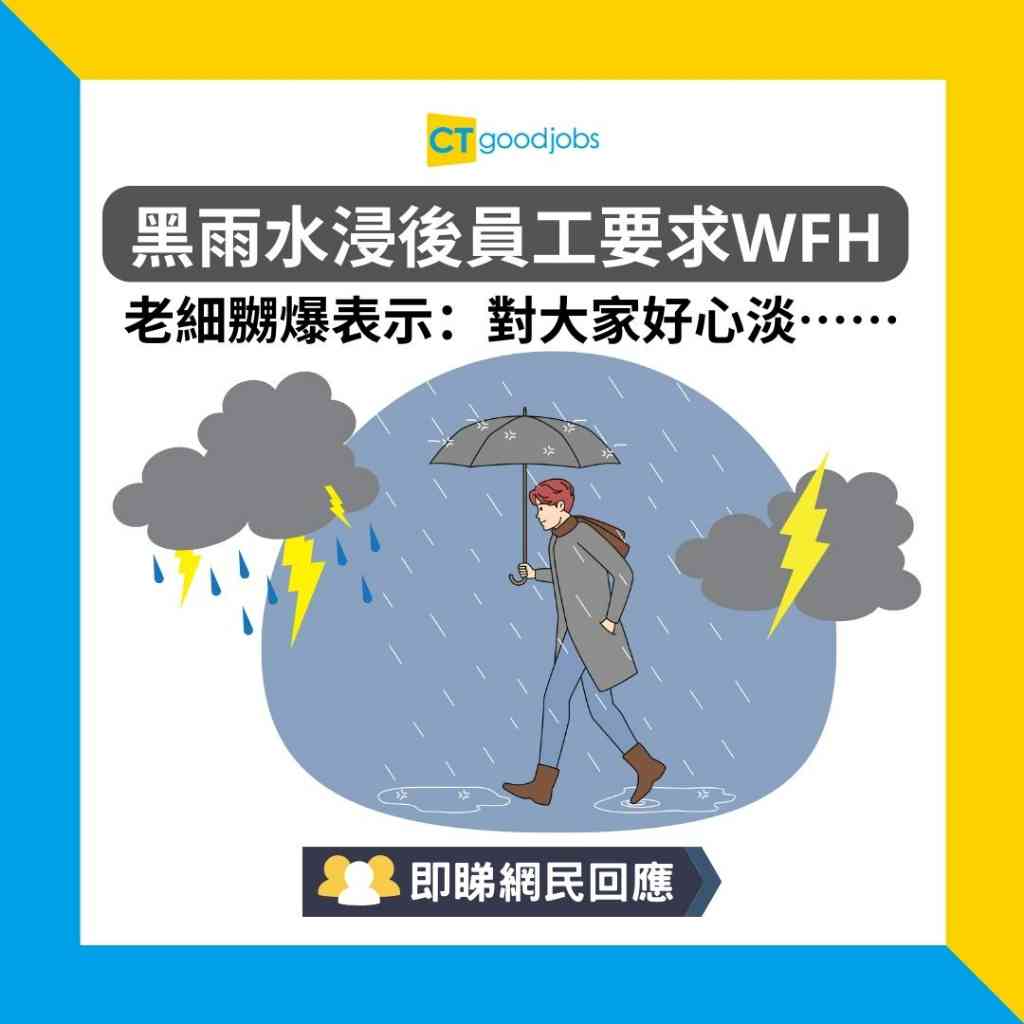 【極端天氣】黑雨水浸後員工要求WFH 老細嬲爆表示:對大家好心淡⋯⋯