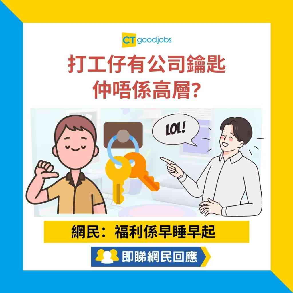 網民 H:負責公司開門閂門,代表要早啲返工畀真高層,又要等佢地收工先可以走人,咁樣職位有幾高?