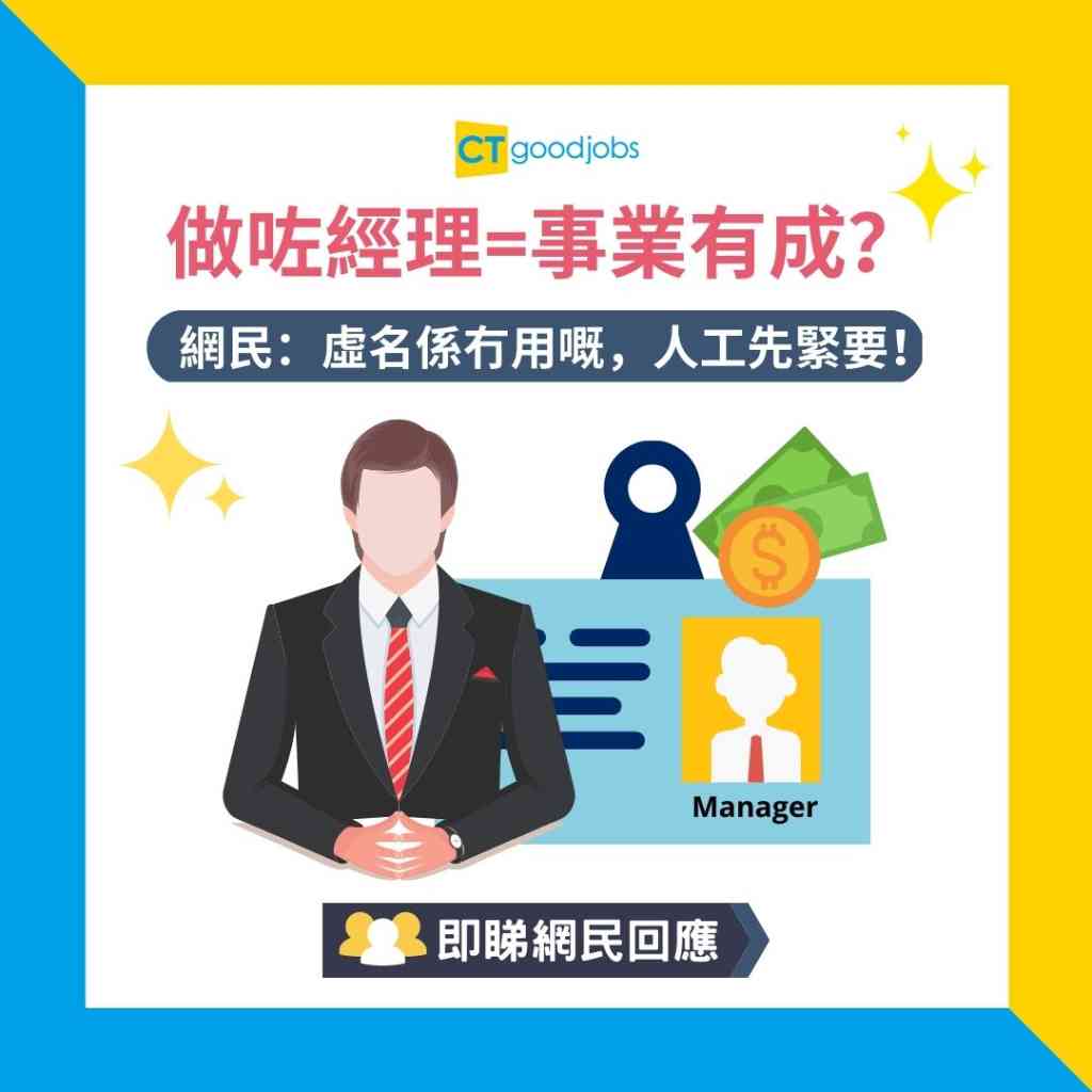 在職場上,沒有人會想原地踏步,每位打工仔都夢寐以求可以升職加人工。近日,有網民於香港討論區上以「我係一個經理,算唔算事業有成?」為題向一眾網民發問。這位打工仔在職場上打滾了20年,最近終於升職成為經理,好奇大家對經理這個職銜的看法。