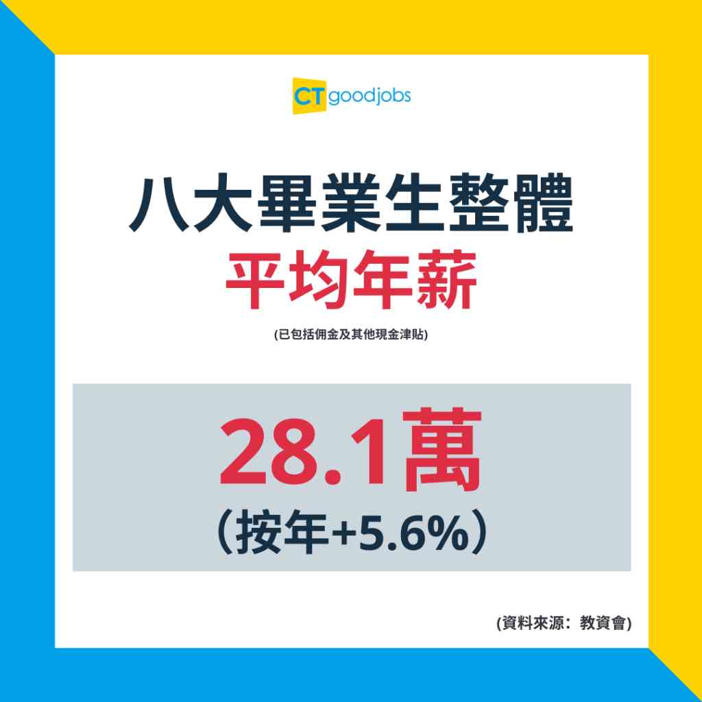 根據大學教資會最新數據顯示,8間資助大學的2020/21年度畢業生就業情況好轉,整體失業率為2.2%,按年跌0.8%;平均年薪則按年升約5.6%,達到28.1萬,即平均月薪約2.34萬。
