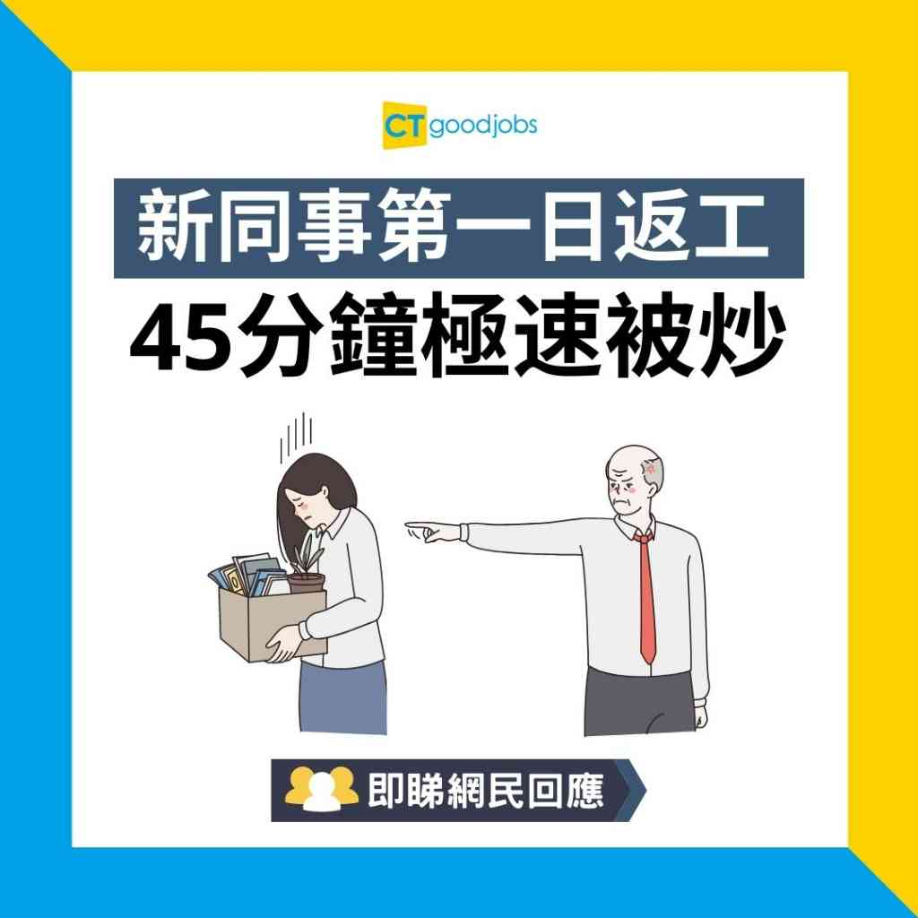 作為新入職員工,上班第一天必定會感到十分緊張。為了在老闆及同事面前留下好印象,打工仔都會做足準備,而穿着得體和準時到達都是最基本的禮儀。近日,有打工仔於Facebook專頁「辦公室日報」上投稿,指新同事第一天上班只用了45分鐘就被老細辭退。投稿人形容:「這是個極速傳説,前無古人後無來者。」