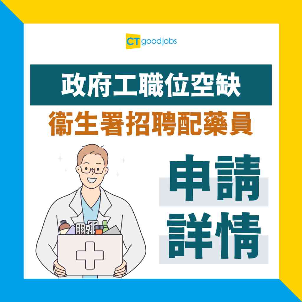 衞生署現正招聘配藥員,月薪$23,585至$47,010,以公務員條款聘用。