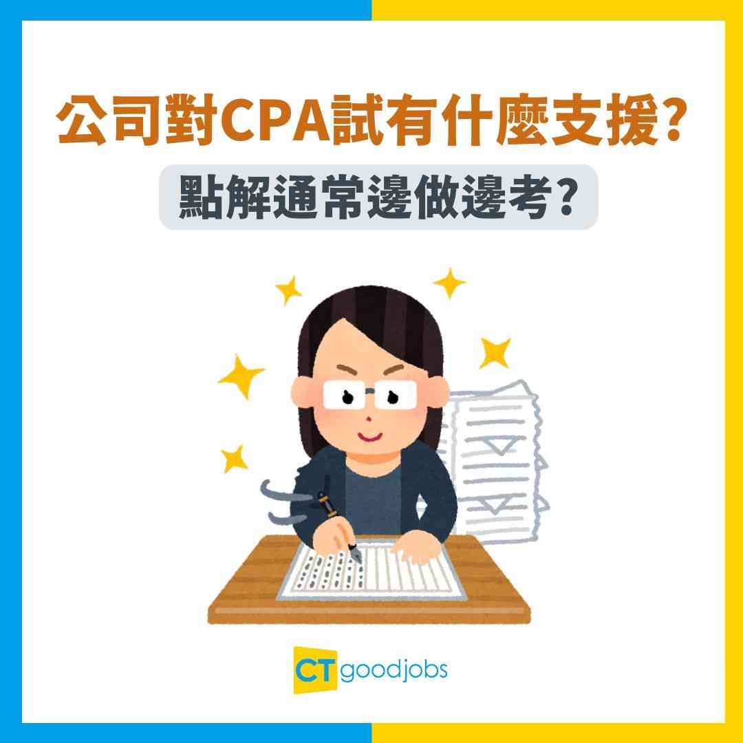 不少「四大」會計師事務所和上市公司均設有在職支援,例如考試假、學費補貼、模擬課程等。部分更會視考取CPA為晉升條件,以增加員工積極性。因此,愈來愈多公司鼓勵員工報考並提供資源配合。