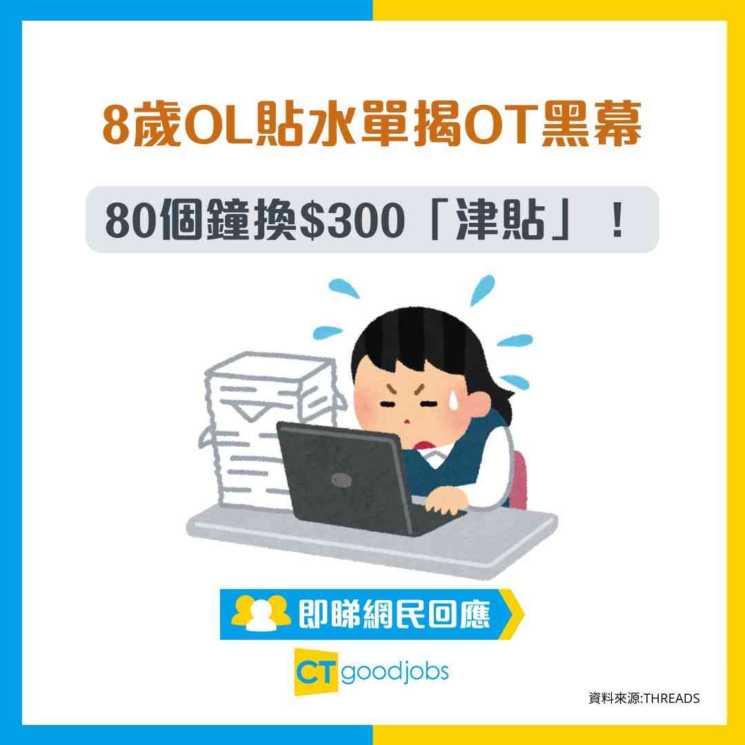 延伸閱讀:【OT地獄】28歲OL貼水單揭OT黑幕!80個鐘換$300「津貼」 網民神算:時薪低過麥記10倍