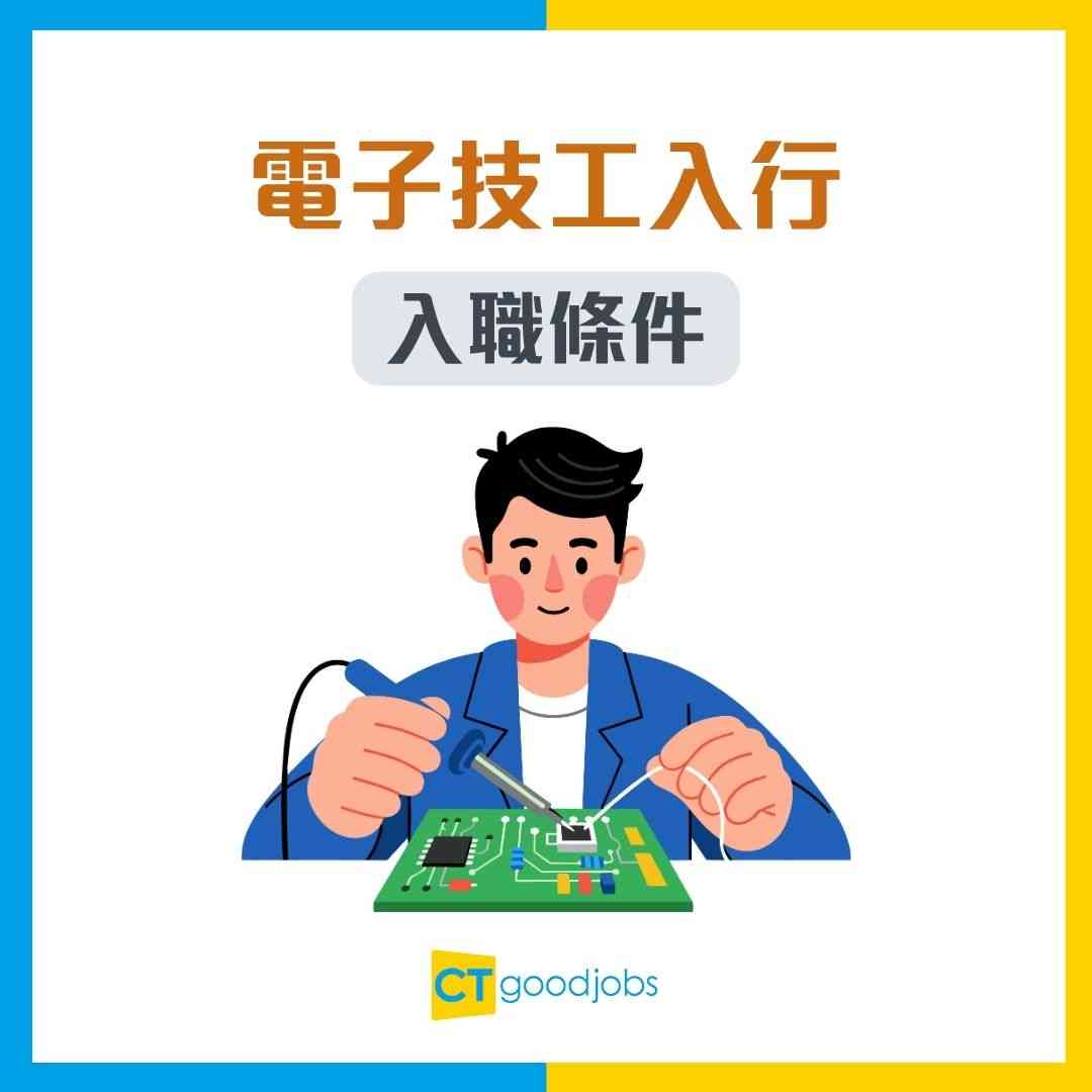 需具完成中學程度及18歲以上。對於應屆畢業生或無經驗人士,可先申請電子技術員職位開始。建議報讀VTC「初級電氣技工證書」(課程編號:EG422401P)或「電工證書」課程以提升競爭力。大部分企業或電子維修公司會提供入職培訓及實務指導,協助新電子技工快速上手。具備基本電子知識、了解電路理論、熟悉電子測試儀器為基本要求。